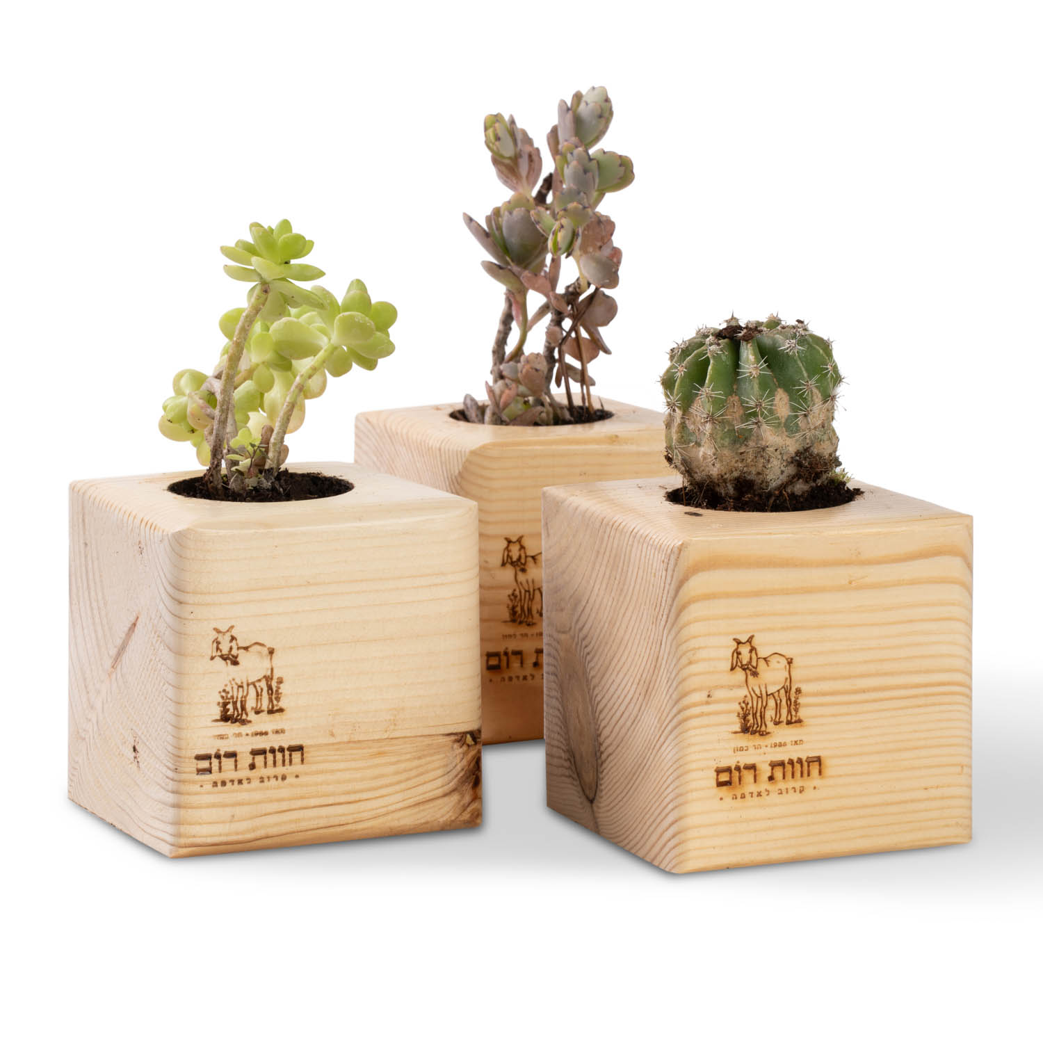 קובית עץ עם סוקולנט